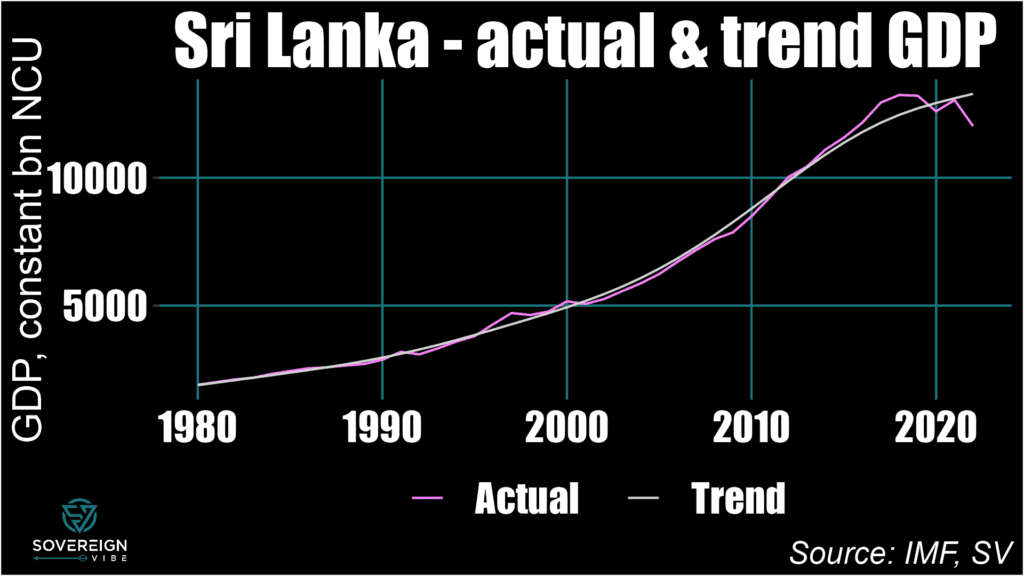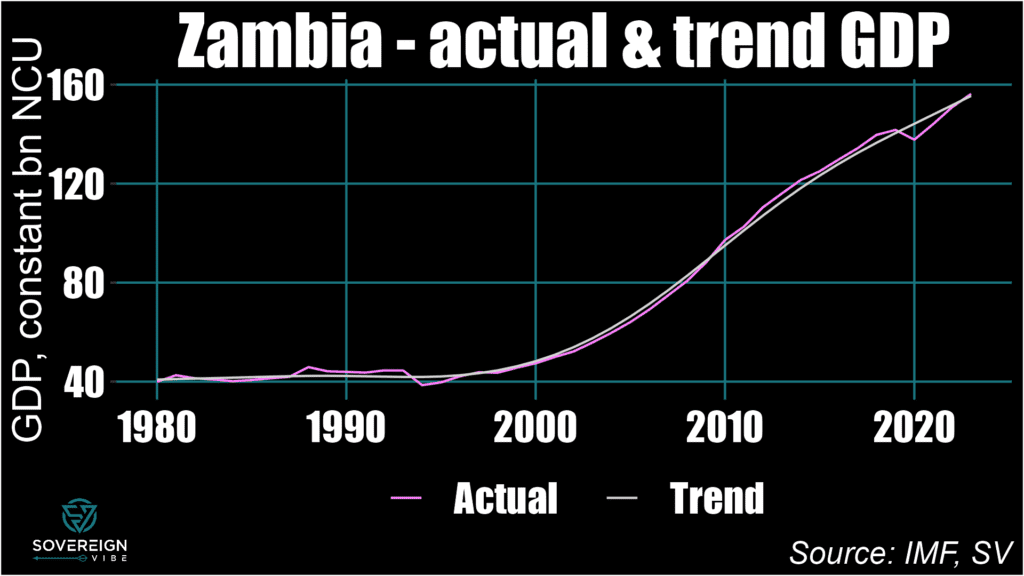The charts below provide examples actual and trend GDP. I’ve selected these countries because they are ongoing sovereign debt restructuring cases of interest, even if I only present them here for demonstrating how actual / real and trend / potential GDP relate to each other and output gaps: